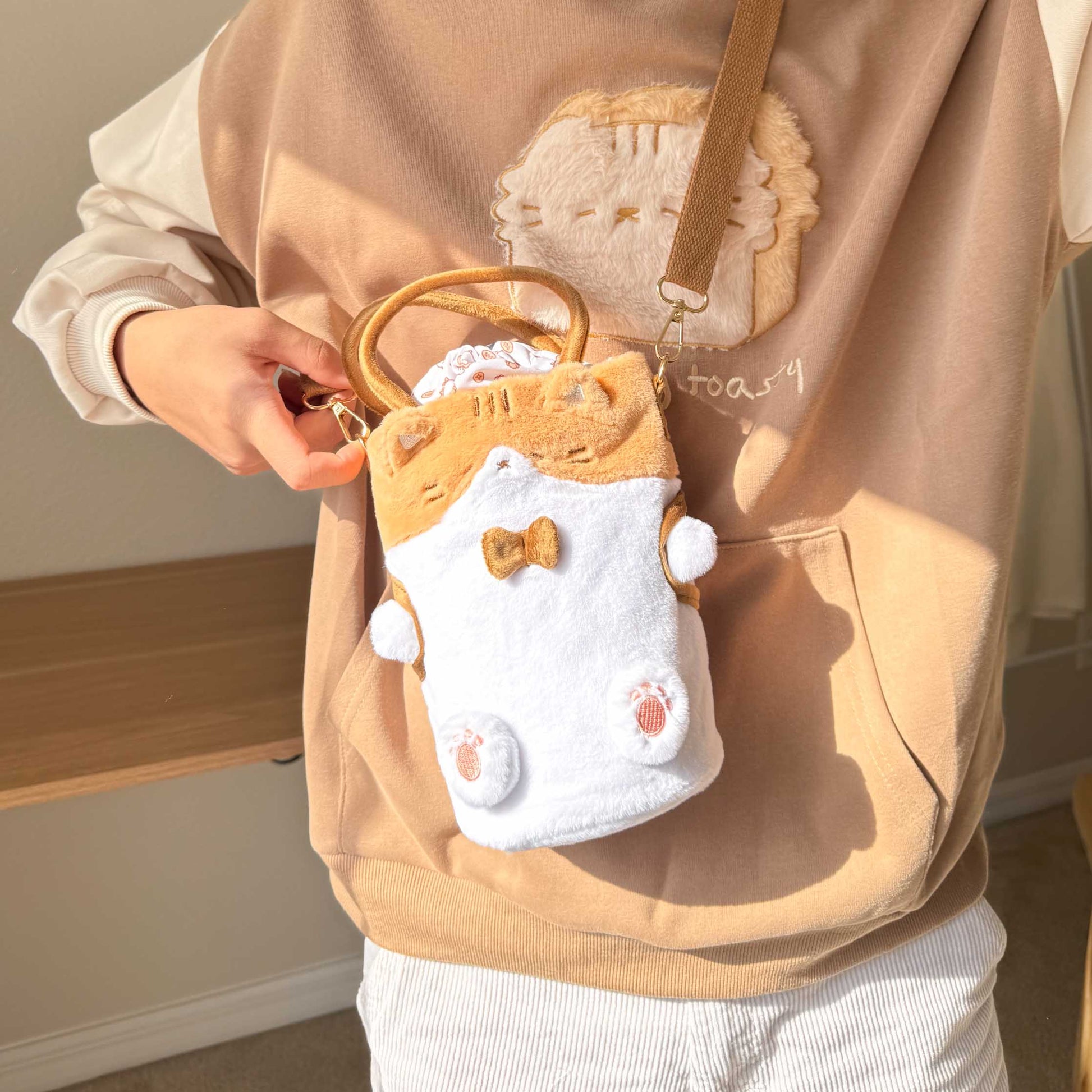 It's a bag... wearing a backpack?? This bag has multiple pockets for all your items (including the little backpack Toast is wearing!), and can fit up to a 32 oz water bottle.